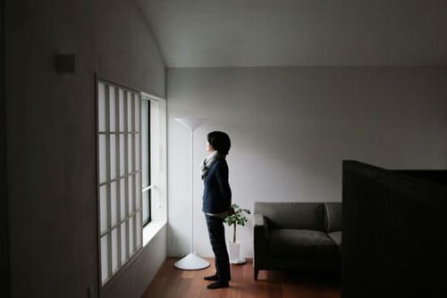 仙台に建つ「青葉の家」の、冬のある日。 大きな窓辺の、ほっと息をつける場所。 ダイニングから一段下がって、庭の高さに近いリビング。 タモの木で作られた窓枠と、ざっくりとした風合いのカーテン。 無垢板のフローリング。 大きな庇に囲まれ、ざらっとし…
